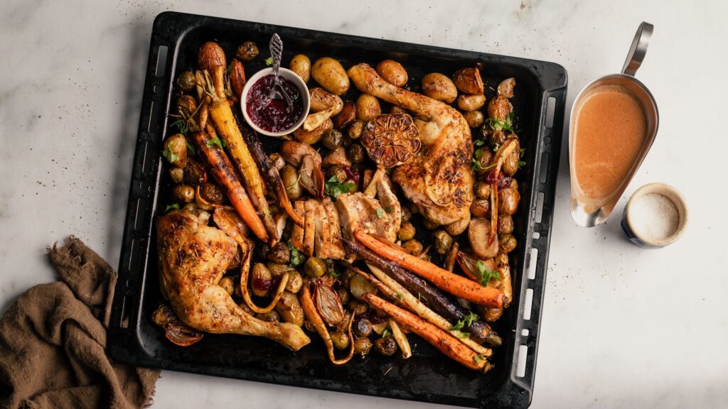 GEBRADEN KIP MET PASTINAAK, WORTEL EN KRUIDEN UIT DE OVEN